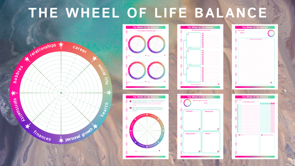 1) Page for filling out the wheel of life balance.